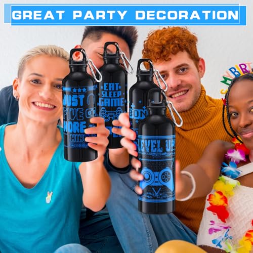 Video Game Design: inspired by various video game elements, these water bottles are designed with symbols and text related to gaming; This feature makes them the good fit for a gamer themed event or party, captivating the interest of gaming enthusiasts