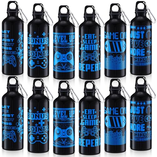 SiliFine 12 Pcs 17oz Gaming Water Bottle Sports Insulated Water Bottles with Hook Clip Funny Quotes Aluminum Gamer Iced Coffee Travel Mug for Birthday Video Game Party Favors (Black)
