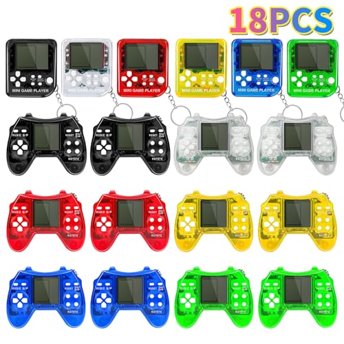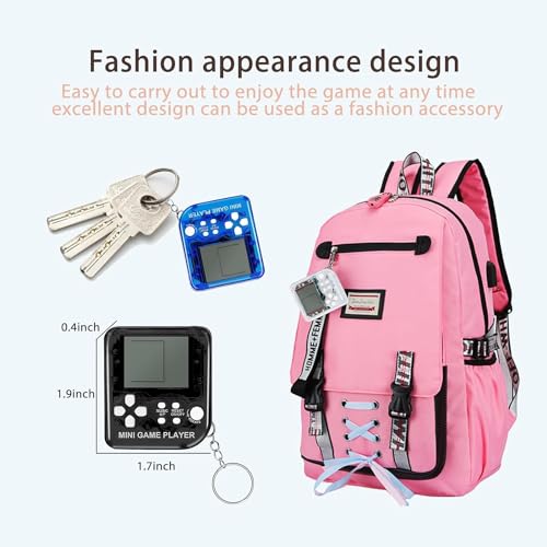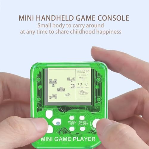 [Mini size video game keychain]: rectangular brick game keychain measures approximately 1.6 x 1.7 x 0.55 inches. Suitable for handheld use, easy to carry and store. Kids party favors 8-12 kids