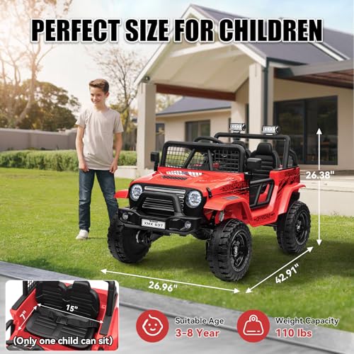 【Unmatched Power and Performance】: Kids electric car featuring 4X50W motors, this kids toys delivers unparalleled power, allowing young adventurers to take on quite a lot of terrains with ease. The robust motor of kids car setup ensures a thrilling driving experience that mimics real off-road adventures of their ride-on car
