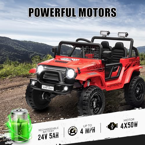 【Unmatched Power and Performance】: Kids electric car featuring 4X50W motors, this kids toys delivers unparalleled power, allowing young adventurers to tackle various terrains with ease. The robust motor of kids car setup ensures a thrilling driving experience that mimics real off-road adventures in their ride-on car
