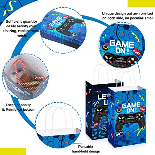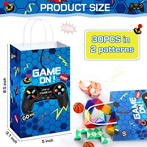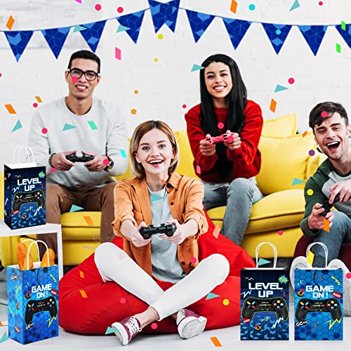 Saypacck 30 Pcs Video Game Party Gift Bags Gamer Theme Party Supplies Level up Paper Handbag Goodie Bag with Handle Gaming Favors for Birthday(Blue)
