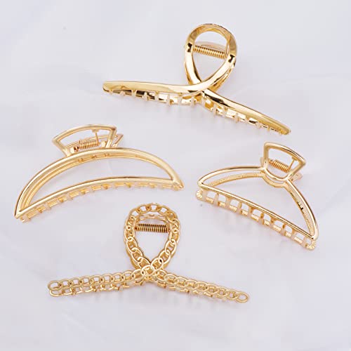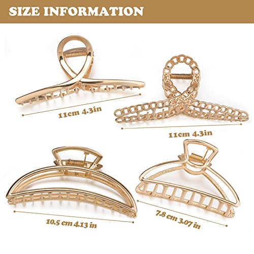 Parcce 4 Pack Large Metal Hair Clips for Thin to Thick Curly Hair, 4.3 Inch Big Nonslip Gold Color Clamps, Perfect Fashion Jaw Claw Hair Styling Accessories for Women and Girls, Christmas Gifts