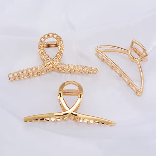 🎁【4 Different Claws】You will get 4 different hair claws in gold color, simple and fashionable hair claw jaw clips which size are about 3.5 to 4.3 inches, they are fit for any dress, dating hairstyle you wear to match all your daily outfits.