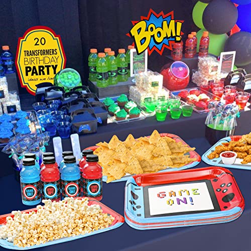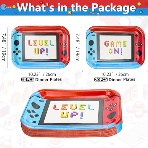 Very best Combination – Gaming Birthday Decorations include 20 x GAME ON controller dinner plates, and 20 x LEVEL UP controller dessert plates.
