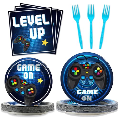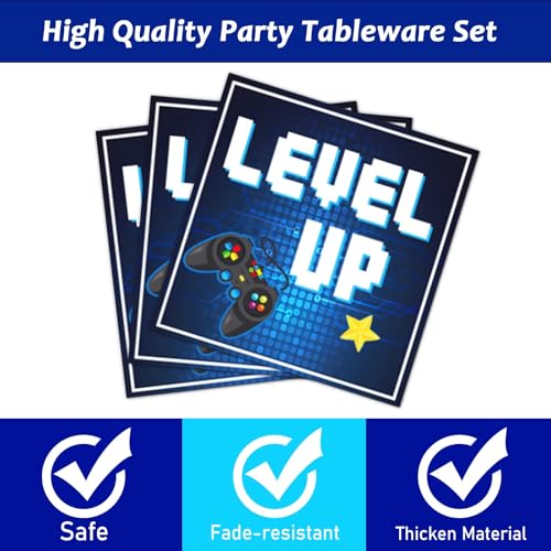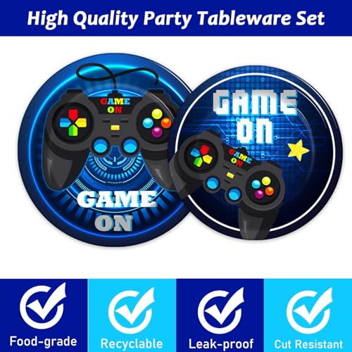 【Package Includes】 You will receive 24 pieces of video game party paper dinner plates of 9’’, 24 pieces of gaming paper plates of 7’’, 24 pieces of game napkins of 6.5’’ and 24 plastic blue forks for each set that can serve 24 guests.