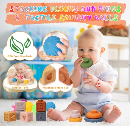 100% SAFE MATERIALS: Crafted from premium food-grade silicone and high-quality ABS plastic, our sensory explore toys are 100% BPA-free, non-toxic, and easy to clean. And to not tear all the way through vigorous handling. Protected and assist to teether, excellent Montessori Toys for babies aged 6, 7, 8, 9, 10, 11, 12 months and toddlers 1-2 years old.