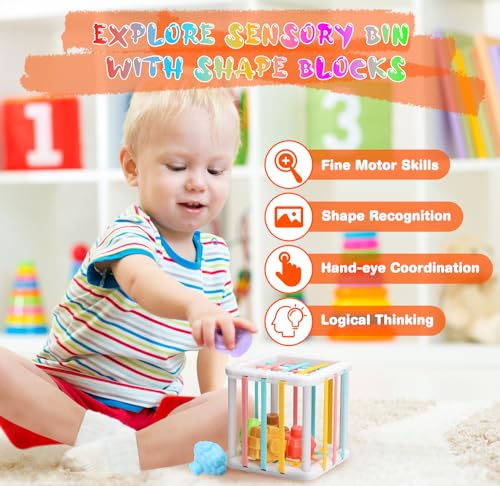 100% SAFE MATERIALS: Crafted from premium food-grade silicone and high-quality ABS plastic, our sensory explore toys are 100% BPA-free, non-toxic, and easy to clean. And not to tear during energetic handling. Safe and help to teether, excellent Montessori Toys for babies aged 6, 7, 8, 9, 10, 11, 12 months and toddlers 1-2 years old.