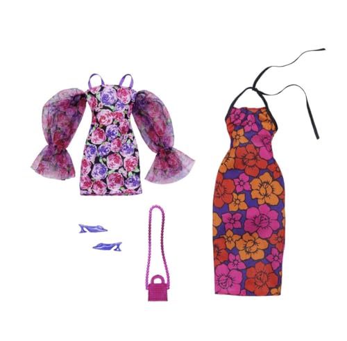 Barbie Clothes Set, Fashion & Accessory 2-Pack Dolls, 2 Dressy Floral-Themed Outfits with Styling Pieces for Complete Looks