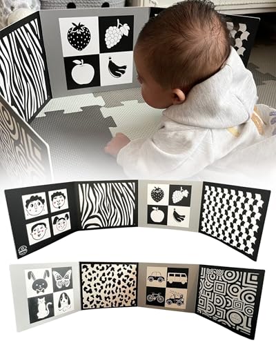 Versatile and Free-Standing: Perfect as high contrast tummy time toys, crib contrast toys for infants, and more, this black and white baby book alternative can be utilized in more than a few positions. Prop them up on the floor, overhead, or alongside for nappy changes. They’re also ideal to be used in Moses baskets, prams, and car seats.