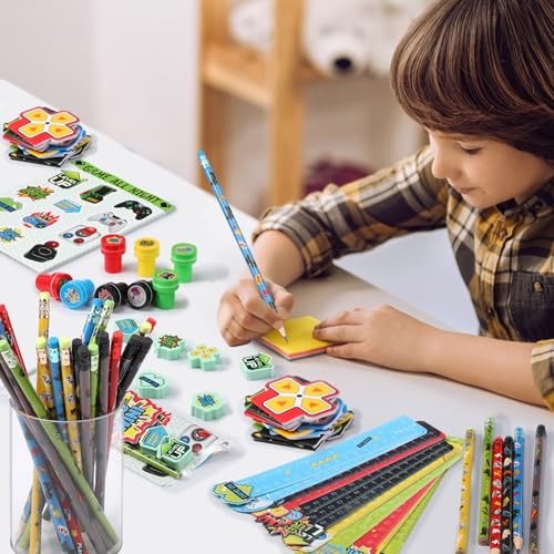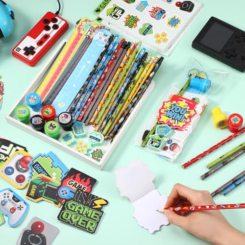 What You Get: you’ll receive 168 pieces of video game stationery set, including 24 mini notepads, 24 large stickers, 24 mini stampers, 24 mini erasers, 24 pencils, 24 rulers, and come with 24 clear gift bags for simple to wrap, the sufficient quantity and quite a lot of styles can meet your video game party needs, will also be also shared with friends