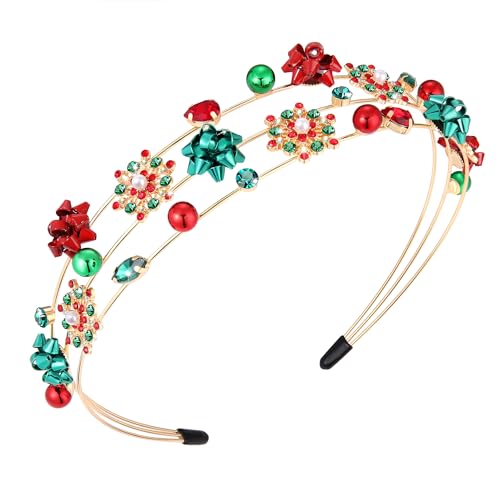Christmas Headbands for Women Snowflake Hairband Snowflake Tiara Hair Hoop Headpiece Accessories Holiday Party Favors Gifts (snowflake bow beads hairband)