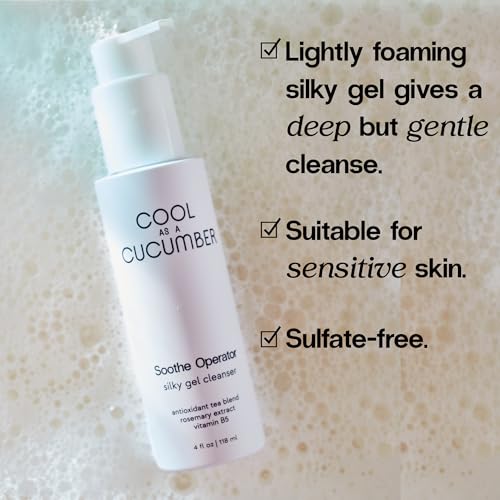 Cool as a Cucumber Soothe Operator Silky Gel Face Cleanser, Gentle Face Wash with Glycerin, Vitamin B5, Rosemary Extract, Vegan, Fragrance Free, Non-Comedogenic, Oil Free, Non-Stripping, 4 FL Oz