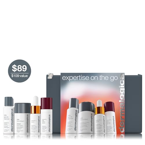 Dermalogica Expertise on the Go – Travel Size Skin Care Gift Set, Contains Face Cleanser, Exfoliator, Serum, Moisturizer with SPF, and Skincare Bag