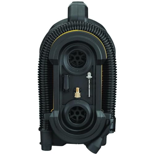 Our 20V MAX* Corded/Cordless Air Inflator can run on any considered one of three power sources** for maximum versatility: 20V MAX* battery, 12V DC, or 110V AC. Apply it to the jobsite, or at the go. It includes a high-pressure rubber hose for durability. The threaded chuck and included onboard accessories make it easy to inflate items from tires to footballs. Setting desired air pressure is simple with the digital gauge, and the auto-shutoff provides accurate inflation. The high-volume hose allows fast inflation of mattresses and other inflatables with the rush of a button. Move the hose to the deflation port for quick and easy take down. An onboard LED light helps to offer illumination in dark spaces. Heavy-duty rubber feet lend a hand reduce walking even as in use. **Battery, charger, and AC power adapter sold one by one.