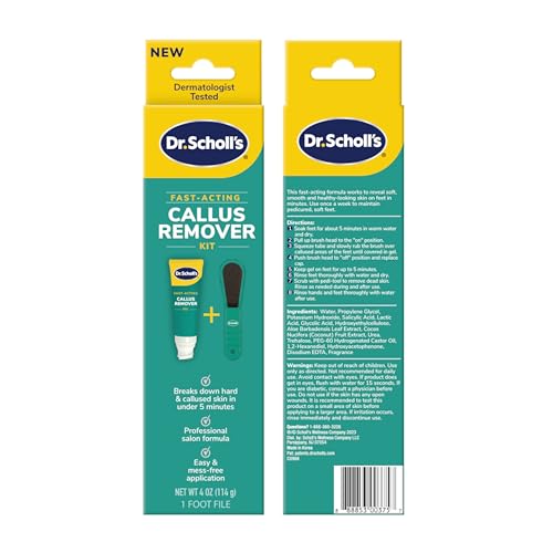Dr. Scholl’s Fast Acting Callus Remover Gel Kit, Hard Skin Removal, Smooth Soft Feet in Minutes, Salon Professional Formula, Mess Free Application, Exfoliating Foot File Pedicure Tool Included
