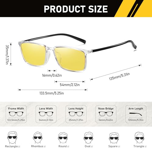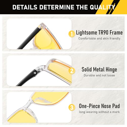 DUCO Round Women Polarized Night Vision Driving Anti Glare Yellow Glasses Polarized Reduce Glare and Enhance Vision 5206