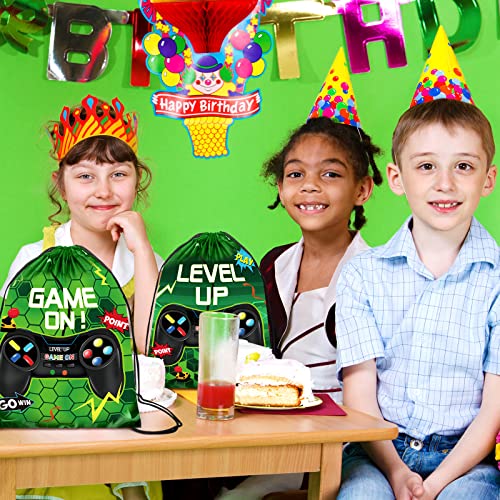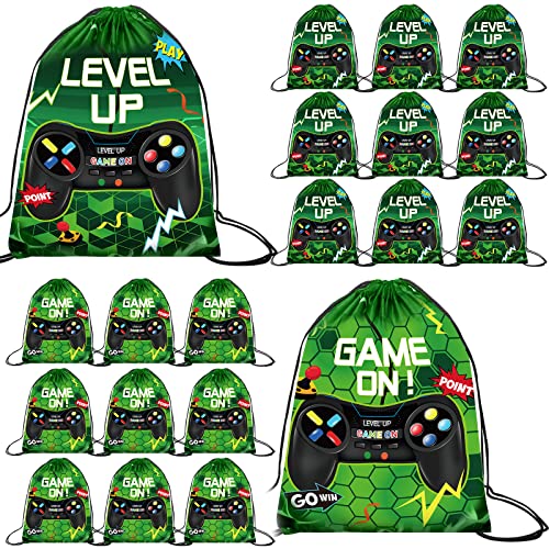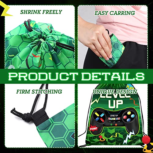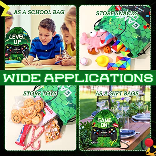 Eccliy 20 Pcs Video Game Party Favor Bags Gamer Birthday Party Drawstring Bags for Kids Boys Girls 12 x 10 Inch Gaming Goodie Treat for Game on Theme Decorations Supplies(Green,Fresh Style)