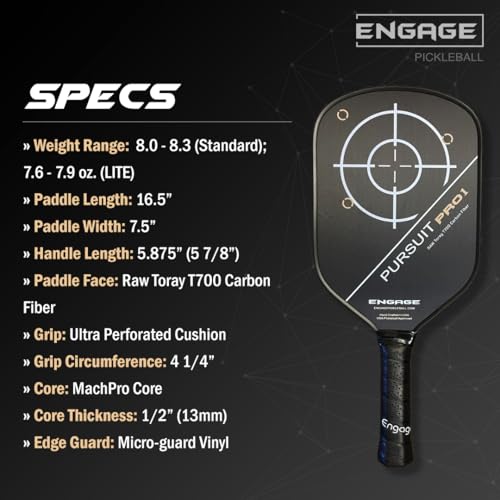 Engage Pursuit Pro1 Pickleball Paddle – Raw T700 Toray Carbon Fiber for Extreme Spin – MachPro Core for Maximum Power & Control (Red-White-Blue, Light Weight (7.6-7.9oz))