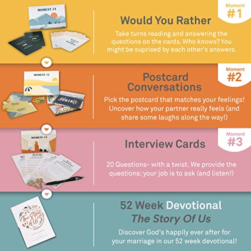 Grow Together: For meaningful couples date night ideas, our date boxes include access to videos that you can watch anytime, anywhere to grow with experts who’ve been there. The Dates to Remember box also includes “The Story of Us”, with 52 weekly readings, it’s a journey through love, faith, and shared experiences, deepening your connection on every page