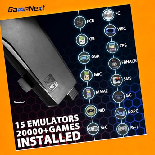 GameNext Wireless Retro Gaming Console Stick Retro Video Game Console Stick Built in 20000+ Games with 9 Emulators, 4K HDMI Output with 2 2.4G Wireless Controllers (64GB Memory Card)