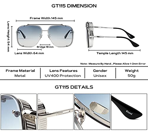Gtand Fashion Oversized Square Aviator Gradient Sunglasses For Men Vintage Metal Side Shield Steampunk Sun Glasses 64mm