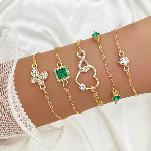 IFKM Gold Bracelets for Women, 14K Gold Plated Dainty Layered Chain Bracelets Adjustable Cute Bangle Link Bracelet Set