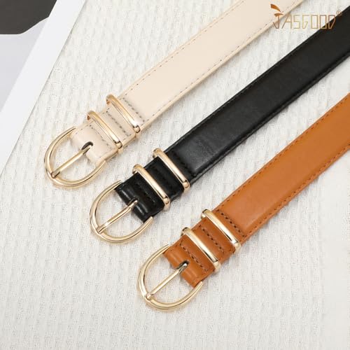 JASGOOD 3 Pack Women Leather Belt for Jeans Pants Gold Buckle Ladies Leather Belt