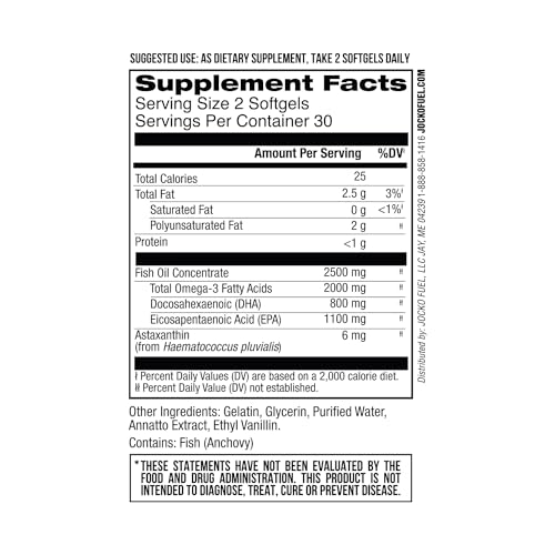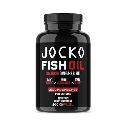 Jocko Fuel Omega 3 Fish Oil Supplement – Burpless Fish Oil 2000mg Omega 3 Fatty Acid Supplement Powerful Antioxidant with Astaxanthin – Supports Brain, Heart, & Mood (60 Capsules) (30 Day Supply)