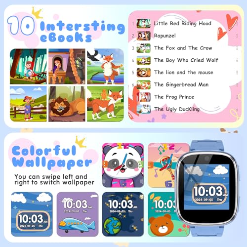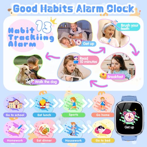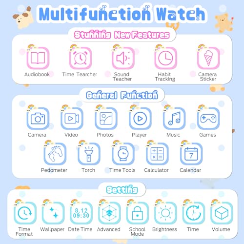 EXCLUSIVE DESIGN: This watch not only has the basic functions of children’s smartwatches available on the market, but also becomes as smart as the parents’ watches, with a full range of functions such as photo, music, games, alarms and so forth. Understand that, and also has a storybook, time teacher, sound teacher, habit alarm clock, camera stickers, pedometer, multi wallpaper, multi-language and more