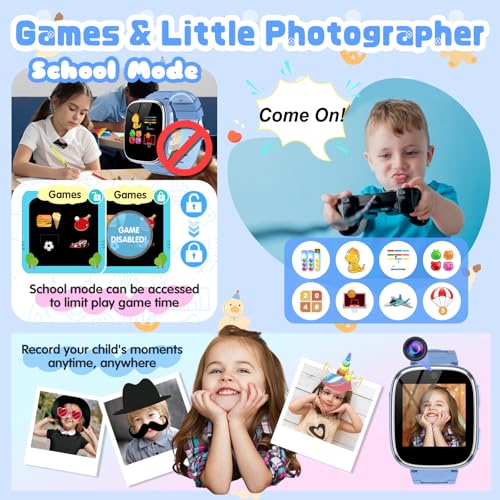 Kids Smart Watch Toys for Boys Girls – Children Watch for Kids 4-12 Years Touch Screen Watch with 15 Games Video Camera Music Player Alarm School Mode Education Birthday Gifts Ages 5 6 7 8 9 10 (Blue)