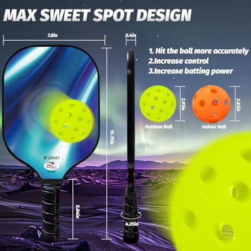 LEEKEY Pickleball Paddles Set of 2 – USAPA Approved Fiberglass Pickleball Racket, Racquet Made of Polypropylene Honeycomb Core,Lightweight Design Pickleball Paddles for Men Women Beginners