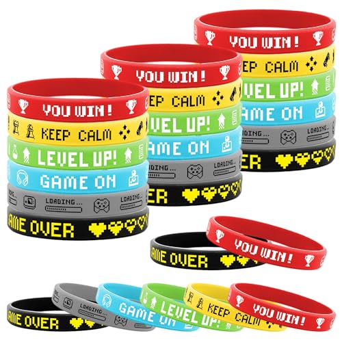 Lesnala 48 PCS Video Game Rubber Bracelet Gamer Silicone Wristband for Theme Party Supplies Decorations Kids Teenagers and Adults Birthday Present 6 Styles
