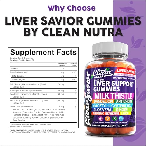 All In One Milk Thistle Gummies: Potent ingredients like milk thistle supplement, dandelion root supplement, artichoke extract, nac supplement, aloe vera plant, ground ginger, turmeric root, berberine supplement, and lemon balm to offer robust liver Fortify. Blend of liver vitamins, with n-acetyl cysteine, Choline, and turmeric supplement, work together for your overall well-being. Where as milk thistle extract and dandelion root supports liver health and works as a fiber supplement.