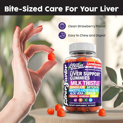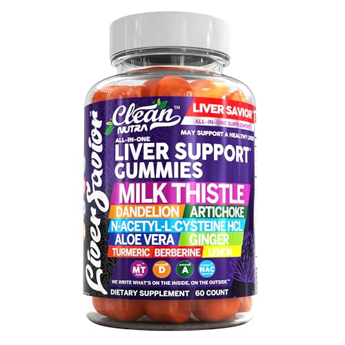 Liver Cleanse Detox Support Gummies with Milk Thistle Gummy Vitamins with Dandelion, Artichoke, Aloe Vera, Ginger, Berberine, Lemon, N-Acetyl-L-Cysteine, Turmeric Supplement and HCL by Clean Nutra
