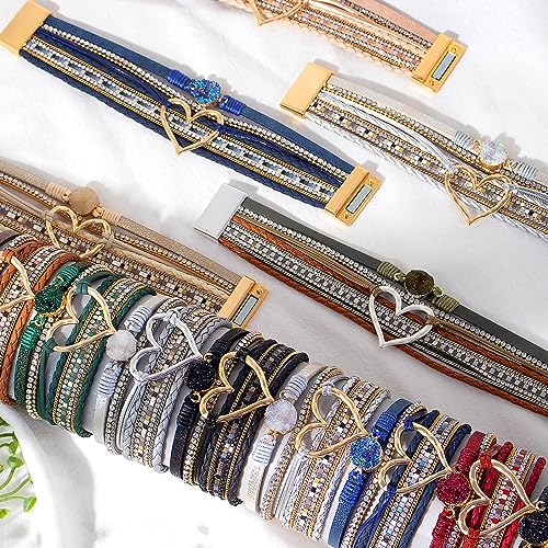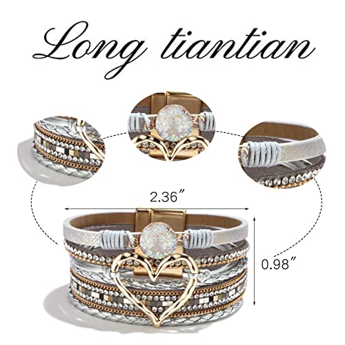 Long tiantian Heart Leather Wrap Bracelets for Women Handmade Stackable Boho Cuff Bangles Bracelet Trendy Birthday for Her