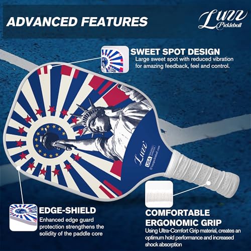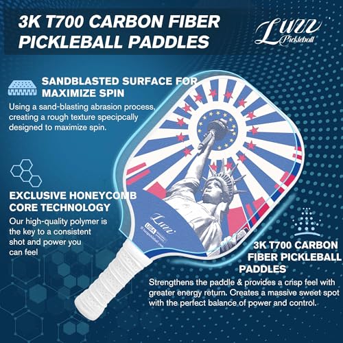 LUZZ Pickleball Paddles, T700 Carbon Fiber Pickleball Paddle Sandblasted Surface with Honeycomb Core Pickle Ball Rackets for Beginners Increased Spin Strength & Control Stability