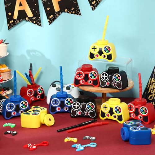Gamepad Shaped Design: our gamer cups for party favor are designed with game themed patterns, including game controller modeling, principally in yellow, red, blue and black, brightly colored, full of fun, creating strong game atmosphere to your party