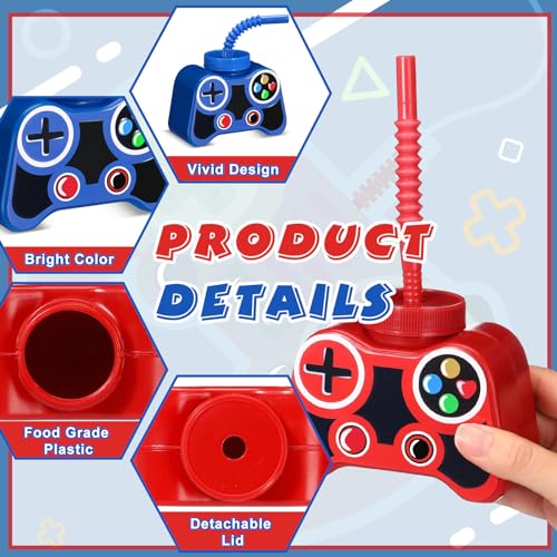 Safe Material: video gaming handle cups with straws are made of plastic material, reliable, lightweight but sturdy, easy to clean, and hard to break, which can be repeatedly applied; Please note that it is not recommended to use dishwasher