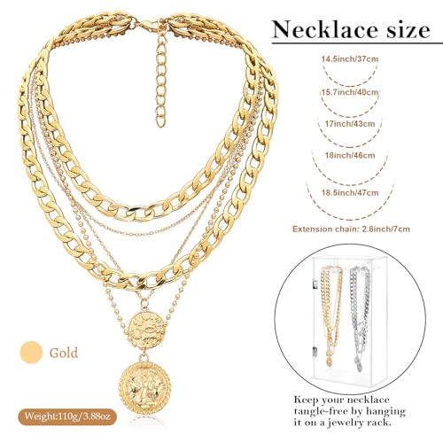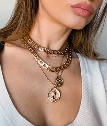 MJartoria Layered Necklaces for Women Trendy Retro Coin Pendant Necklace Dainty Chunky Chain Choker Necklaces for Jewelry Birthday Gifts
