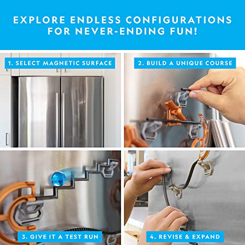 BUILD ANYWHERE MAGNETS STICK – This STEM marble maze for kids and adults may also be built on any vertical magnetic surface just like the fridge, lockers, whiteboards, workbenches & more!