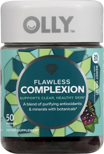 OLLY Flawless Complexion Gummy, Clear and Healthy Skin Support, Vitamins E, A, Zinc, Chewable Supplement, Berry – 50 Count (Pack of 1)