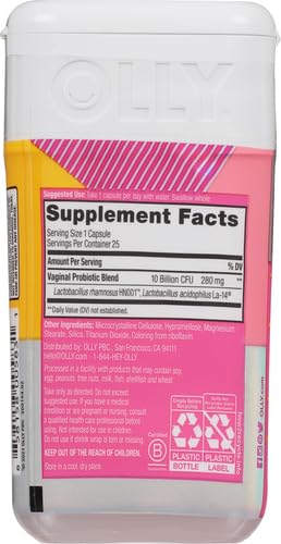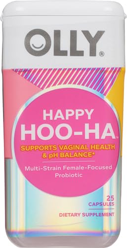 OLLY Happy Hoo-Ha Capsules, Probiotic for Women, Vaginal Health and pH Balance, 10 Billion CFU, Gluten Free – 25 Count (Packaging May Vary)