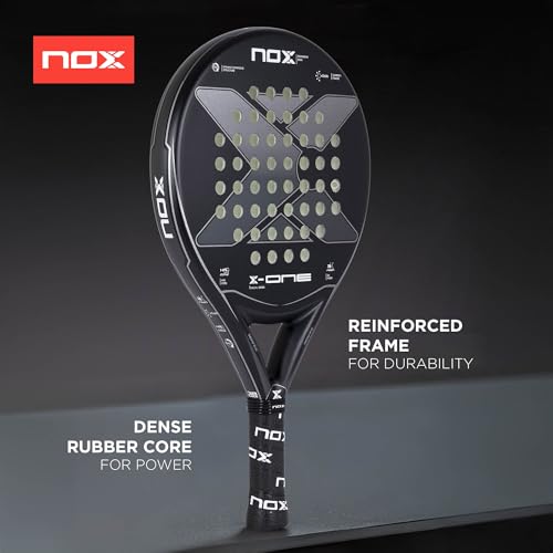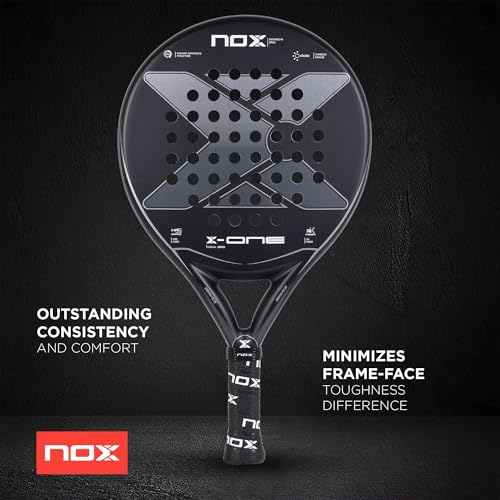 VERSATILE AND HIGH-PERFORMANCE DESIGN: The Nox X-ONE 2023 padel racket features a round shape and a balanced 360-375 gram weight, making it perfect for players of all skill levels. Its 38 mm profile and robust HR3 core provide a blend of control and power, ideal for those transitioning from casual play to more competitive paddle tennis.