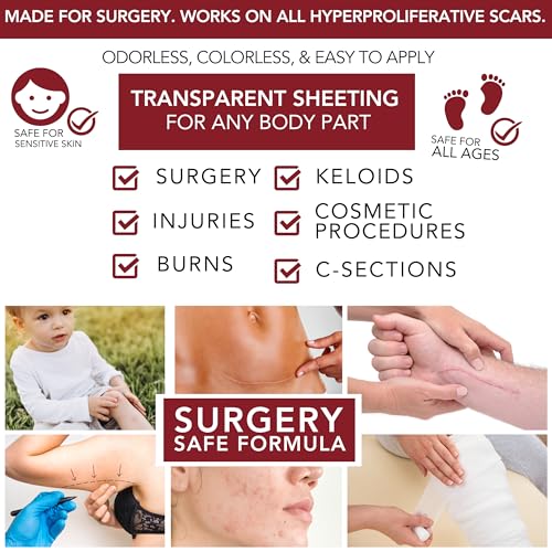 PHYSICIAN-MADE SURGERY-GRADE SCAR GEL SHEETING | CONTAINS ONLY SCIENTIFICALLY PROVEN INGREDIENTS to support new & old scar removal and skin repair. No additives, placebo or harmful ingredients.