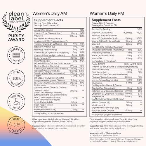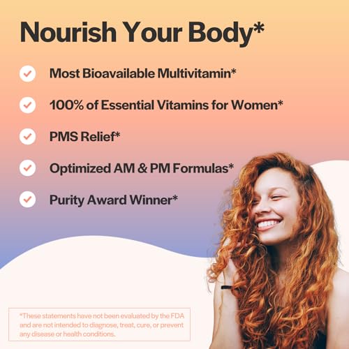 Premium Bioavailable Daily Multivitamin for Women with Iron, Folate, Calcium, Omega-3 DHA & Vitamin D | 100% of Essential Vitamins for Women | 2 Bottles | Optimized AM & PM Doses | 30 Day Supply