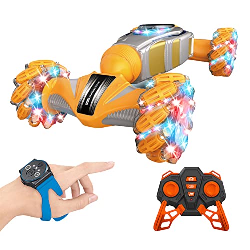 PRYME ONE Remote Control Stunt Spray Gesture car Remote Control and Gesture Sensing, 360 Degree Off Road Vehicle. All Terrain car Smoke Lights and Sounds Car Toy Gift for Boys & Girls. (Yellow)