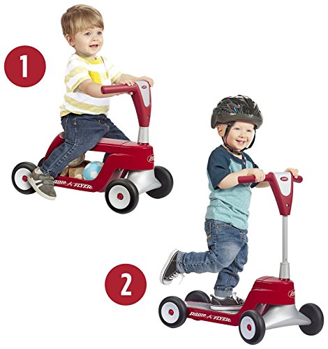 The Scoot 2 Scooter grows with your child through two milestones of play. It’s designed to easily convert from a ride-on to a scooter in one quick step without the use of tools! The sturdy frame and 4 wheels allow beginners to safely build confidence and balance even as riding. The adjustable maintain provides a comfortable ride in each and every riding mode. For ages 1-4 years. For additional questions, beef up, or concerns, please contact our customer service team at https://www.radioflyer.com/customer-service/ or 1 (800) 621-7613.