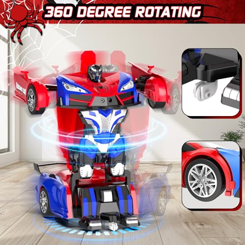 CEGOUFUN Remote Control Car for Boys 4-7, Rc Cars for Boys Age 8-12, One Button Transformation to Robot with Flashing Light 2.4Ghz Transforming Robot Car 1:18 Scale for Kids with 360 Degree Rotation