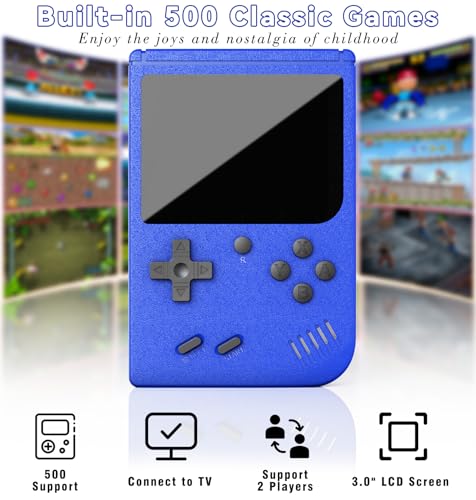 Retro Handheld Game Console, Portable Game Console with 500 Preloaded Classic Games, Handheld Video Games for Kids & Adults, 3.0-Inch Screen, 1200mAh Rechargeable Battery, Support TV & 2 Players